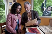 Schrift - Geheimnisvolle BotschaftenMit Hilfe des alten Kalligraphen (Achim Hübner) versucht Yasemin (Sanam Afrashteh) dem Geheimnis der verschlüsselten Botschaften auf die Spur zu kommen. Sie merkt nicht, dass sich noch jemand dafür interessiert (André M. Hennicke) (im Hintergrund)Bild: © ZDF und Antje Dittmann