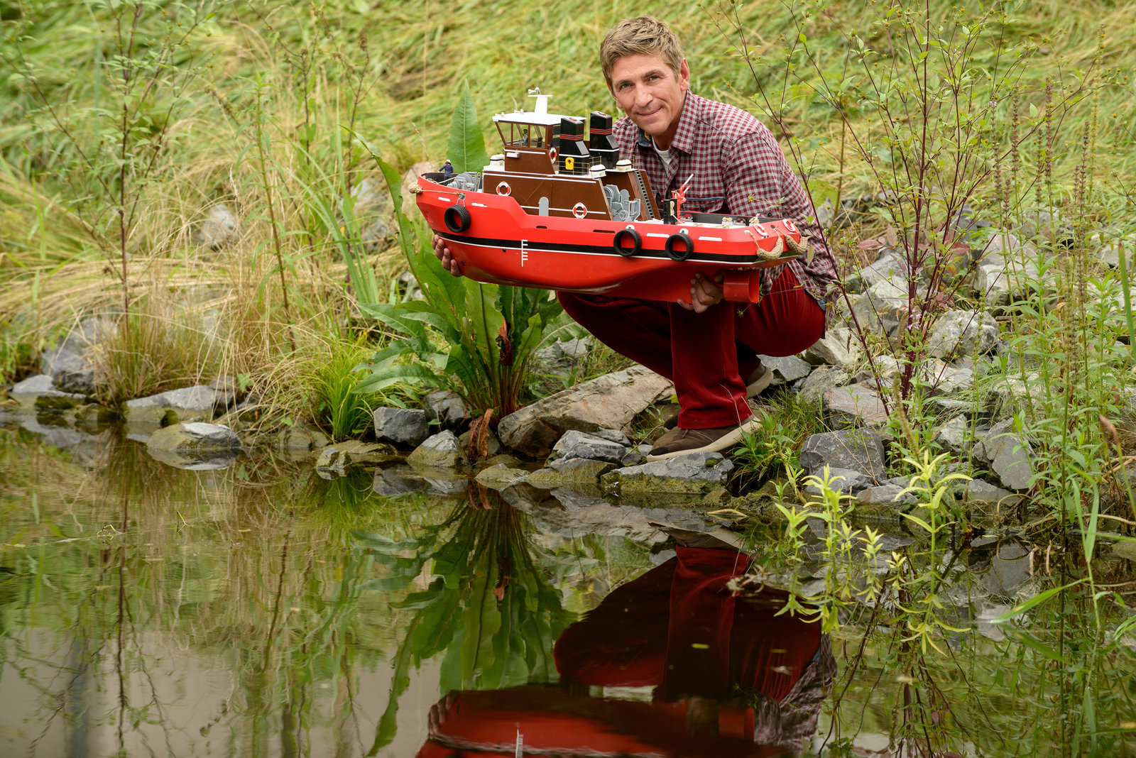 Fluss - Das verlorene BootIst das nicht ein Prachtstück? Fritz Fuchs (Guido Hammesfahr) lässt seine digital steuerbare Eigenerfindung vom Stapel. Fritz ahnt nicht, dass dieses Boot schneller verschwindet, als ihm lieb ist.Bild: © ZDF und Antje Dittmann