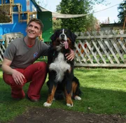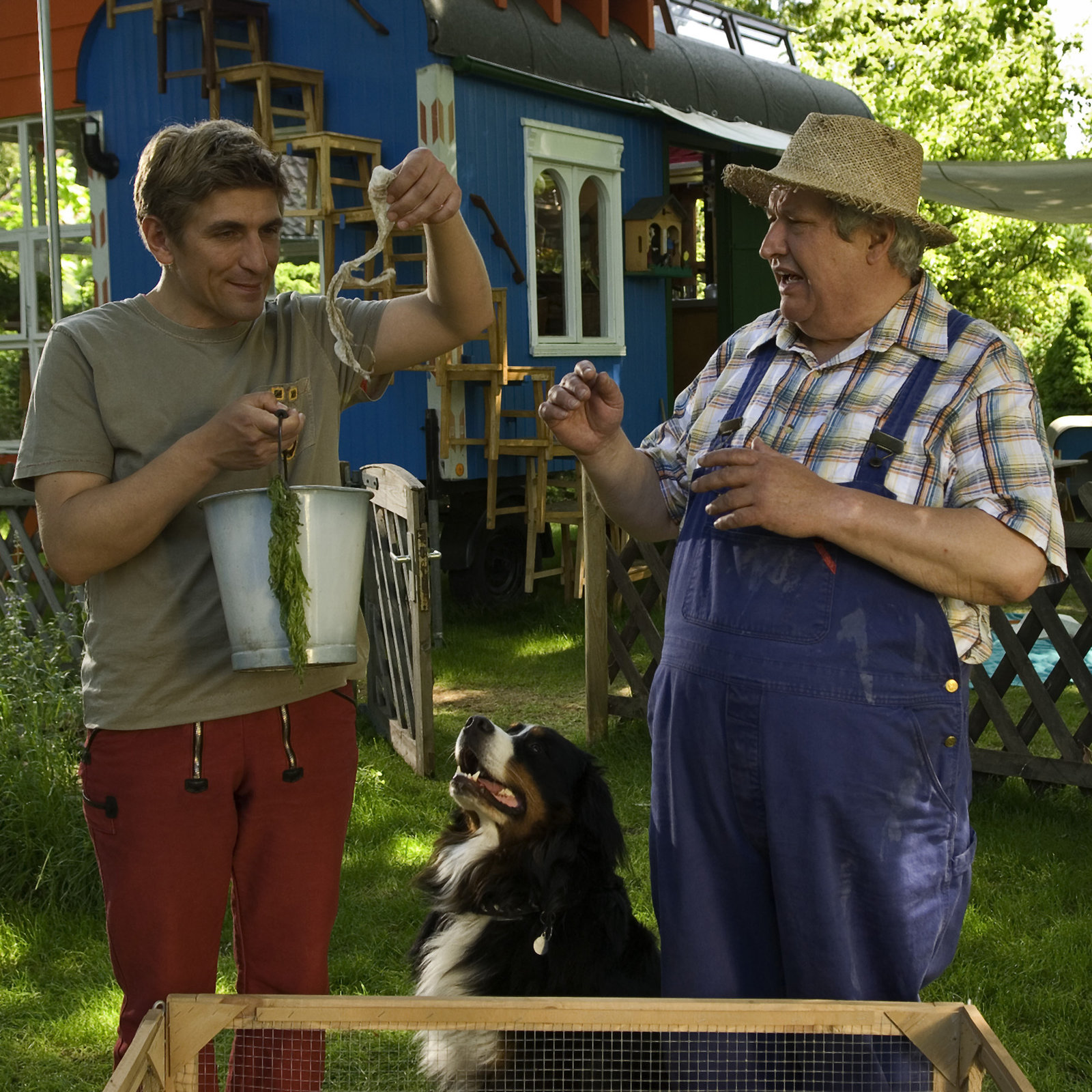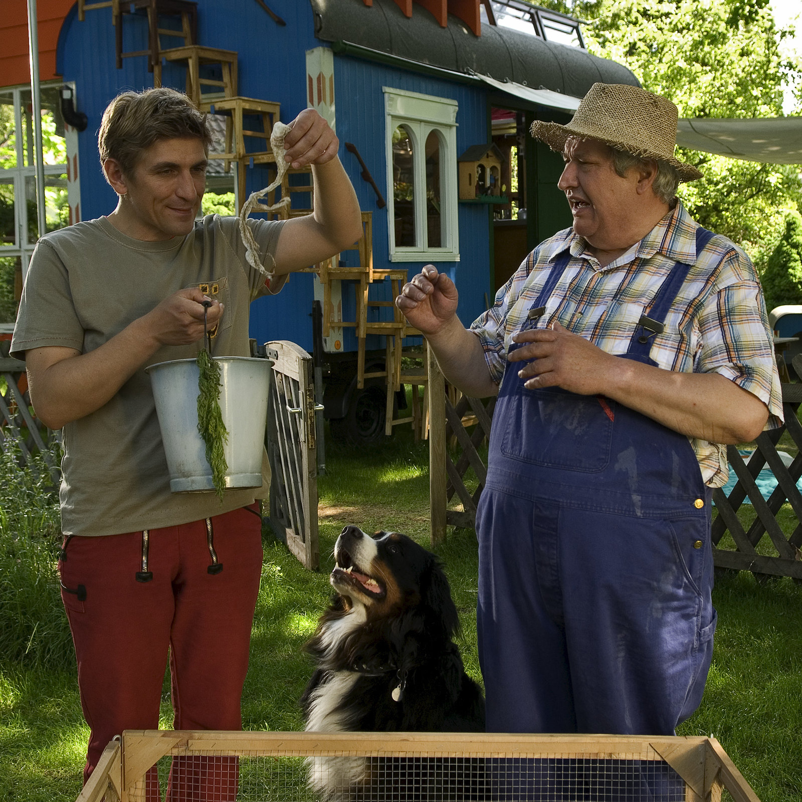 Wildschweine - Auf Fährtensuche im WaldFritz Fuchs (Guido Hammesfahr) nimmt Keks in Schutz, weil Nachbar Paschulke hinter den zerwühlten Beeten in seinem Garten Fritz' Hund als Übeltäter vermutet.Bild: © ZDF/Christiane Pausch