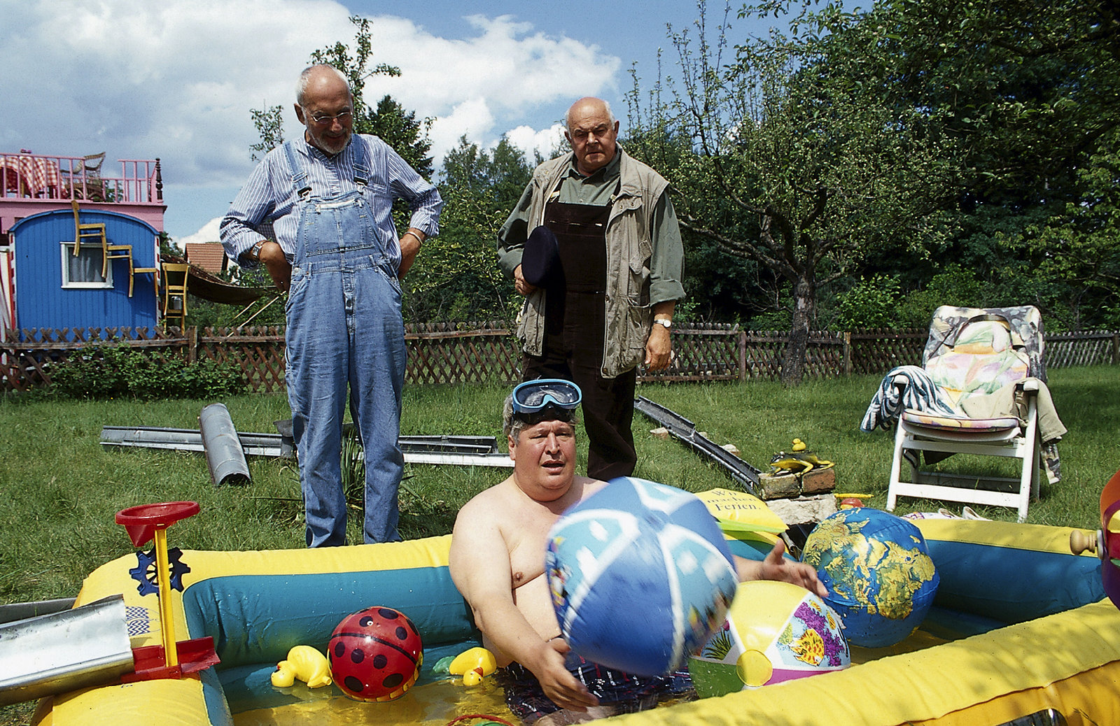 Peter staut das Wasser3. In Zeiten der Wasserknappheit in Bärstadt sehen Peter und der Forellenbauer (Klaus Steinmann) so was gar nicht gerne: Nachbar Paschulke (Helmut Krauss) verschwendet das kostbare Nass für sein Planschbecken.Bild: © ZDF und Christiane Pausch