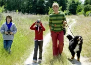 Störche - Nestsuche für den NachwuchsOb es in Bärstadt noch mehr Störche gibt? Fritz Fuchs (Guido Hammesfahr) macht sich mit Ella (Celine Tanneberger), Hannes (Bela Baganz) und Keks auf den Weg.Bild: © ZDF und Antje Dittmann
