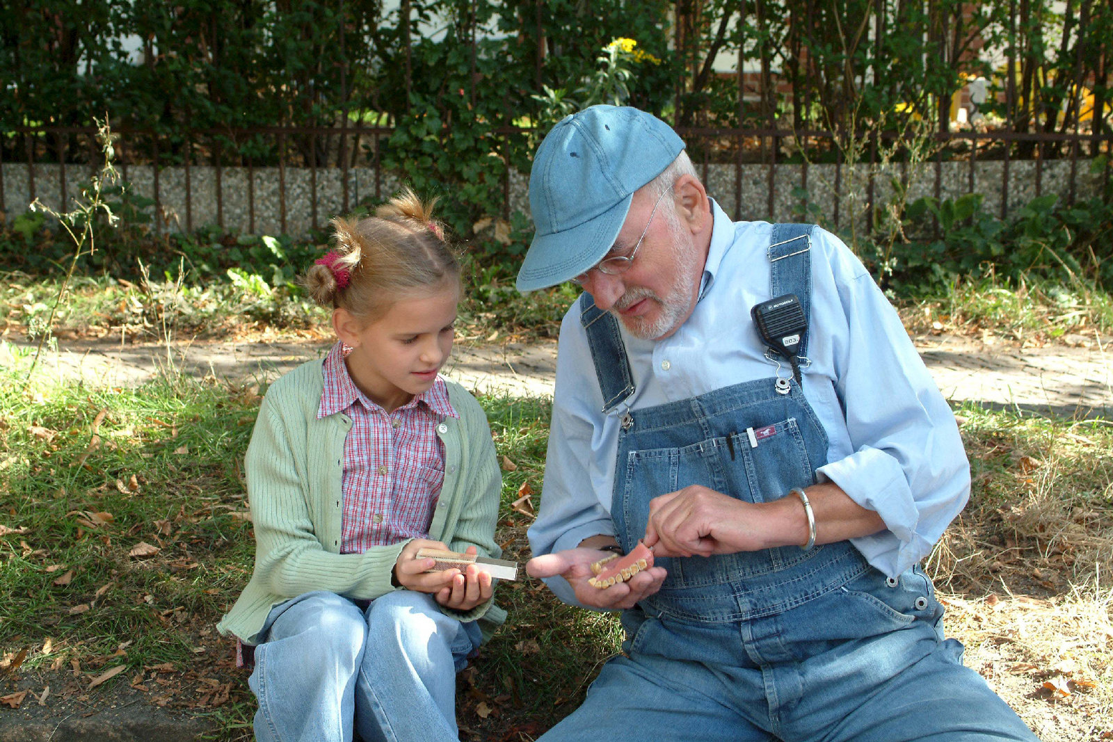 Schlangen - Geheimnisvolle VersteckeFritz Fuchs (Guido Hammesfahr, l.) überrascht Herrn Paschulke (Helmut Krauss) mit seinem Fund - eine echte Schlangenhaut.Bild: © ZDF und Thomas Bergmann
