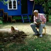 In Peters Garten schmatzt ein SchweinBild 2: Der Nachbar (Helmut Krauss) hütet Hildegard, Peters Schwein. Er malt sich schon einen leckeren Schweinebraten mit Salbei aus, doch Peter hat da ganz andere Pläne.Bild: © ZDF und Chr