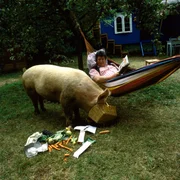 In Peters Garten schmatzt ein SchweinDer Nachbar (Helmut Krauss) hütet Hildegard, Peters Schwein. Er malt sich schon einen leckeren Schweinebraten mit Salbei aus, doch Peter hat da ganz andere Pläne.Bild: © ZDF und Chr