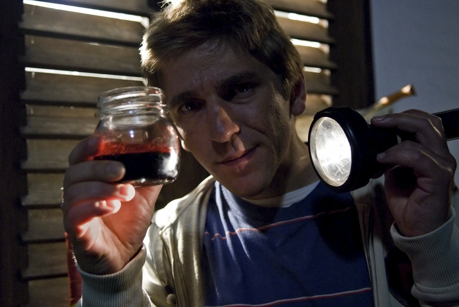 Blut - Rätselhafte SpurenIst das etwa echtes Blut? Fritz Fuchs (Guido Hammesfahr) ist einem Geheimnis auf der Spur.Bild: © ZDF und Thomas Bergmann