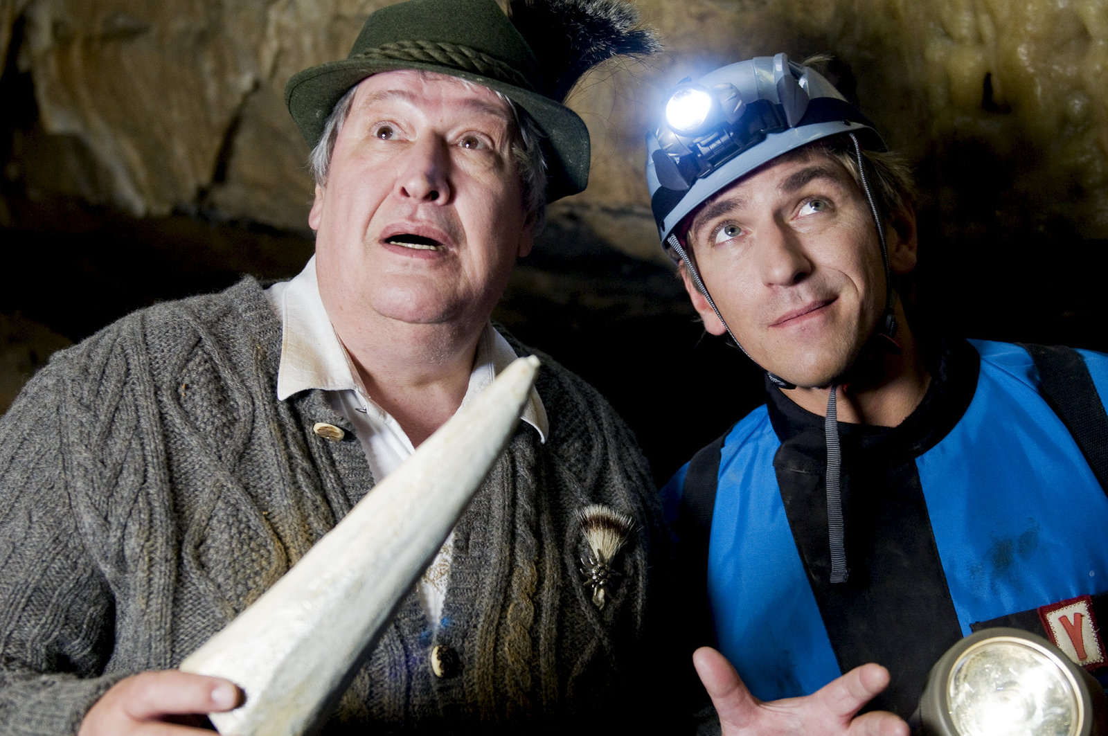 Höhlen - Expedition DrachenzahnTief in der Höhle trifft Fritz (Guido Hammesfahr) auf Jutta Melzer (Winnie Böwe), auch eine Höhlenforscherin. Kann sie das Rätsel um Paschulkes (Helmut Krauss) Drachzahn lüften?Bild: © ZDF und Antje Dittmann