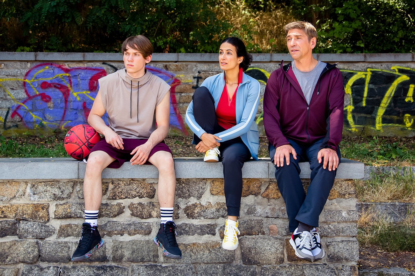 E-Sport - Das knallharte TrainingscampEtwas mulmig wird es Fritz (Guido Hammesfahr, re.) und Finn (Alvar Goetze, li.) schon. Ob ihr ungewöhnliches Training an der Konsole und die Methoden von Yasemin (Sanam Afrashteh) da mithalten können?Bild: © ZDF/Andrea Hansen Fotografie