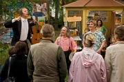 Ratten - Der Fänger von BärstadtDie Löwenzahn-"Familie"- (von li. nach re.): Herr Paschulke (Helmut Krauss), Fritz Fuchs (Guido Hammesfahr), Keks, Schwester Suse (Eva Mannschott) und Kioskbesitzerin Yasemin (Sanam Afrashteh)Bild: © ZDF und Thomas Bergmann