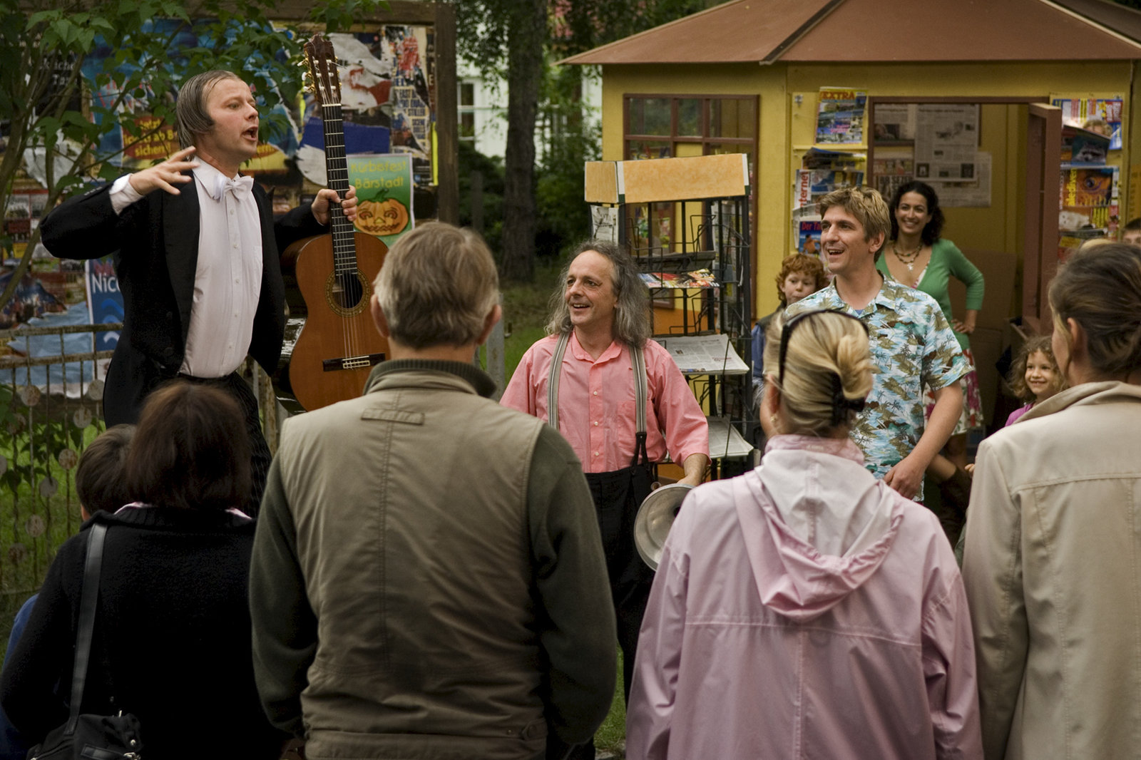 Hören - Karibische Klänge am BauwagenDie beiden Musikclowns GOGOL (Christoph Schelb)und MÄX (Max-Albert Müller) legen mit Fritz Fuchs (Guido Hammesfahr) eine flotte Nummer am Büdchen hin.Bild: © ZDF und Thomas Bergmann
