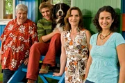 Pferde - Der rettende SprungDie Löwenzahn-"Familie"- (v.l.n.r.): Herr Paschulke (Helmut Krauss), Fritz Fuchs (Guido Hammesfahr), Keks, Schwester Suse (Eva Mannschott) und Kioskbesitzerin Yasemin (Sanam Afrashteh)Bild: © ZDF und Thomas Bergmann
