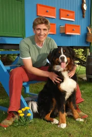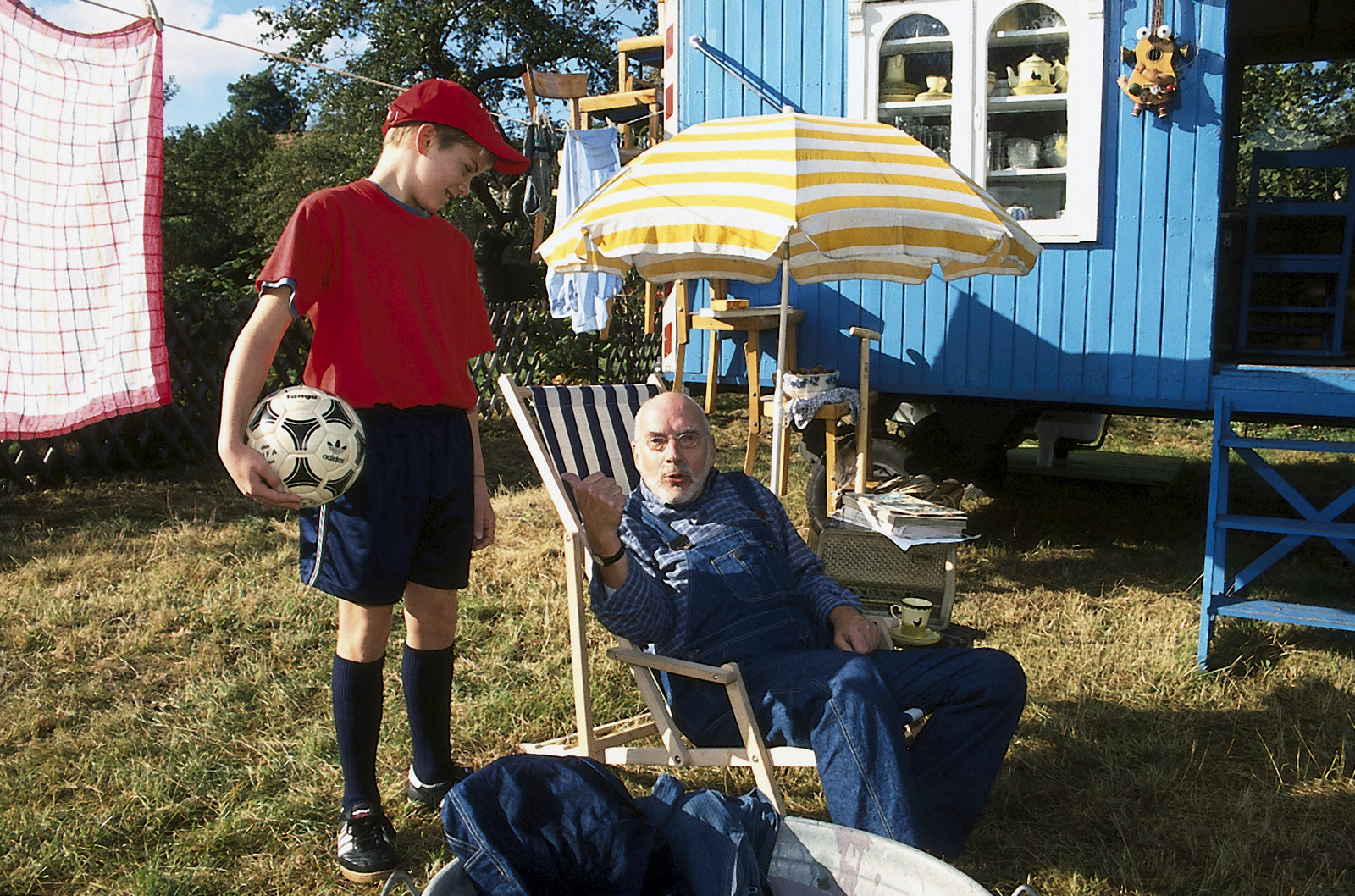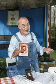 Peter als Wetterfrosch2. Peter (Peter Lustig) macht die Bekanntschaft mit einem Spieler der "Bärstädter Bären". Heute Nachmittag soll es ein Fußballspiel mit anschließender Party im Garten geben.Bild: © ZDF und Christiane Pausch
