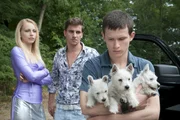 Löwenzahn - Das KinoabenteuerCora (Petra Schmidt-Schaller), Marvin (Julian Sengelmann) sind anfangs nicht darüber erfreut, dass Ronny (Joel Basman) plötzlich mit drei Hundewelpen auftaucht. Doch dann entwickeln sie einen finsteren Plan.Bild: © ZDF und Stephan Rabold