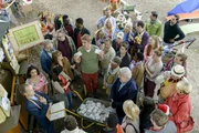 Geld - Der schlaue TauschSämtliche Banken haben wegen eines Computervirus kein Bargeld mehr. Fritz Fuchs (Guido Hammesfahr, Mitte) hat eine geniale Idee: Er hat "Bärstadt-Taler" erfunden. Die Bärstädter sind noch nicht sicher, ob sie das gut finden.Bild: © ZDF/Antje Dittmann