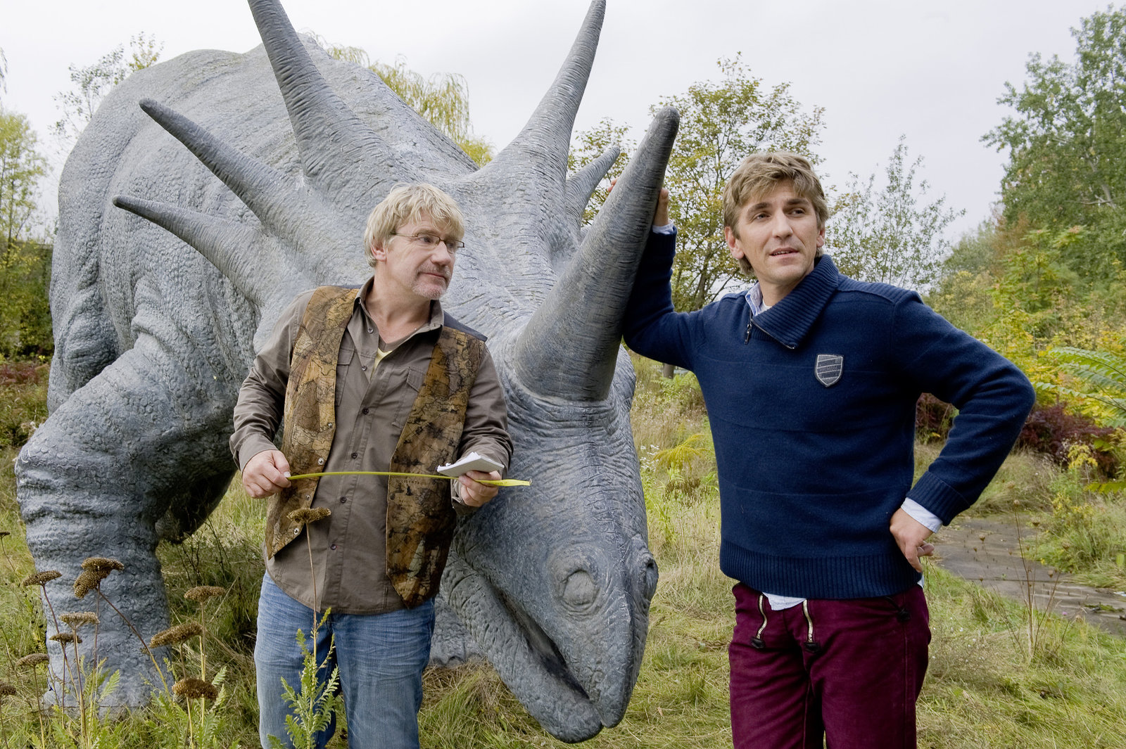 Entwicklung des Lebens - Das schlaue WunderIm alten Dinopark suchen Fritz Fuchs (Guido Hammesfahr) und sein Freund Julius (Jörg Schüttauf) nach ungewöhnlichen Ausstellungsstücken.Bild: © ZDF/Antje Dittmann