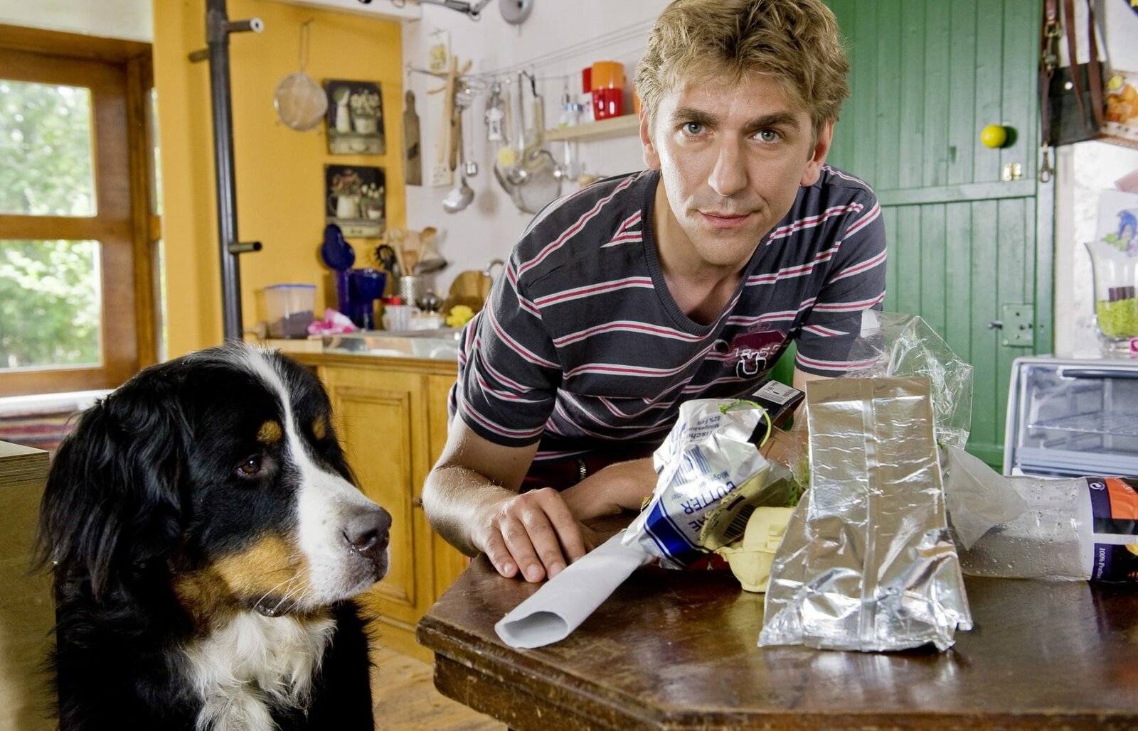 Salz - Weißes Gold zum Geburtstag"Naschen, wann der Hund es will" Fritz Fuchs (Guido Hammesfahr) mit seinem selbstgebauten Hundekuchenautomat.Bild: © ZDF und Antje Dittmann