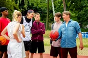 E-Sport - Das knallharte TrainingscampFritz (Guido Hammesfahr, re.) fordert mit Finn (Alvar Goetze 2.v.r.) die Streetball-Gang zum Basketball heraus. Der "Crack" (Ludger Bökelmann, (3.v.l.) findet das nur witzig.Bild: © ZDF/Andrea Hansen Fotografie