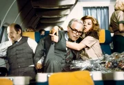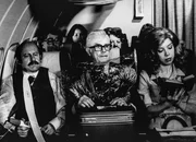 Alles über das Fliegen"Menschliche Nähe" ist beim Fliegen geradezu unvermeidlich. Vor allem der Versuch, dem Mitreisenden beim Wechseln der Kleidung behilflich zu sein, kann zu Situationen führen, die unter normalen Bedingungen als nicht mehr korrekt bezeichnet würden (von links Heinz Meier,Loriot und Evelyn Hamann).Bild: © WDR/Radio Bremen