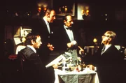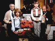 Weihnachten bei HoppenstedtsNormalerweise werden Vertreter von deutschen Hausfrauen gleich an der Haustür abgefertigt. Aber in der Vorweihnachtszeit kann es passieren, dass eine unvoreingenommene Hausfrau das traurige Los von Außendienstmitarbeitern mit Imbiss und Umtrunk mildert. Frau Hoppenstedt jedenfalls fühlt sich wohl im Kreis von drei Herren aus der Staubsauger-, Wein- und Versicherungsbranche. (v.l.n.r. Rudolf Kowalski, Loriot, Kurt Ackermann, Evelyn Hamann),Bild: © Radio Bremen