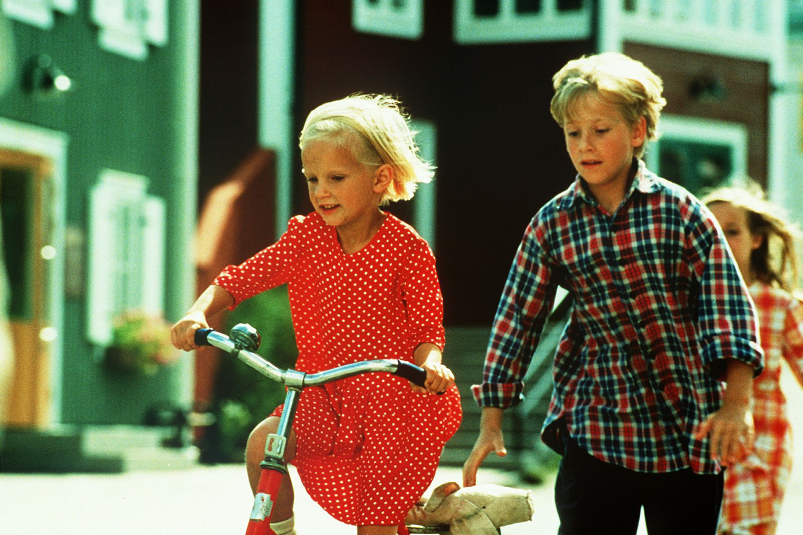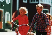 Lotta aus der KrachmacherstraßeLotta (Grete Havnesköld) hat zum Geburtstag ein Fahrrad geschenkt bekommen. Jonas (Martin Andersson) hilft ihr beim Fahren lernen.Bild: © ZDF und Jan Rydqwist