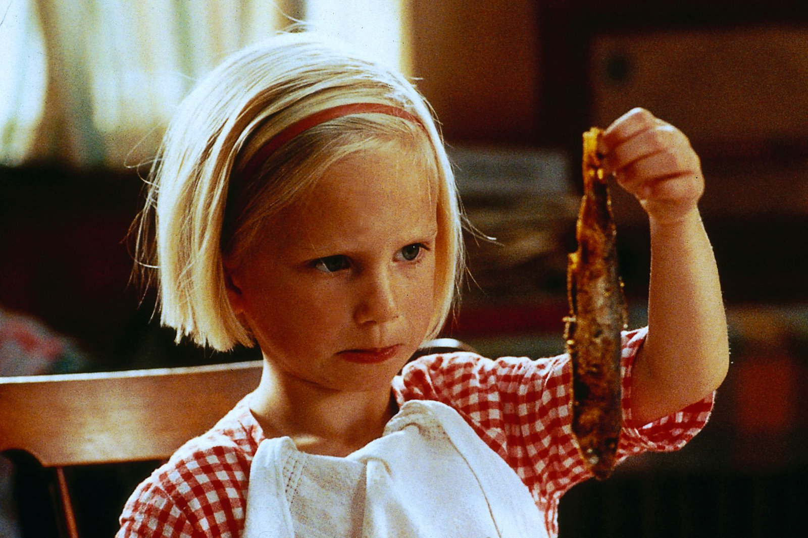 Lotta aus der KrachmacherstraßeAuf der Bahnfahrt zu den Großeltern klebt Lotta (Grete Havneskjøld) Wurstscheiben ans Fenster.Bild: © ZDF/Jan Rydqwist