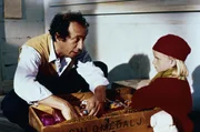 Lotta zieht um6. Weil er seinen Süßwarenladen aufgibt, schenkt Vasilis (Renzo Spinetti) Lotta (Grete Havnesköld) eine große Kiste mit Schokolade.Bild: © ZDF und Jan Rydqwist
