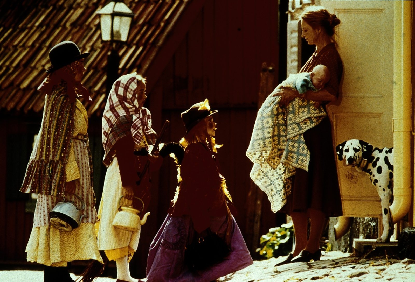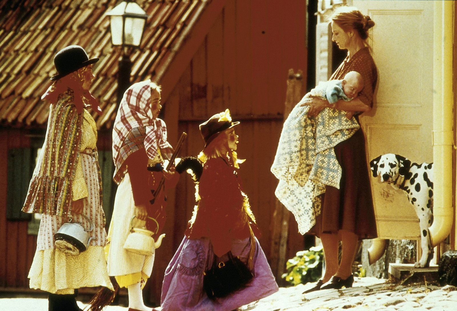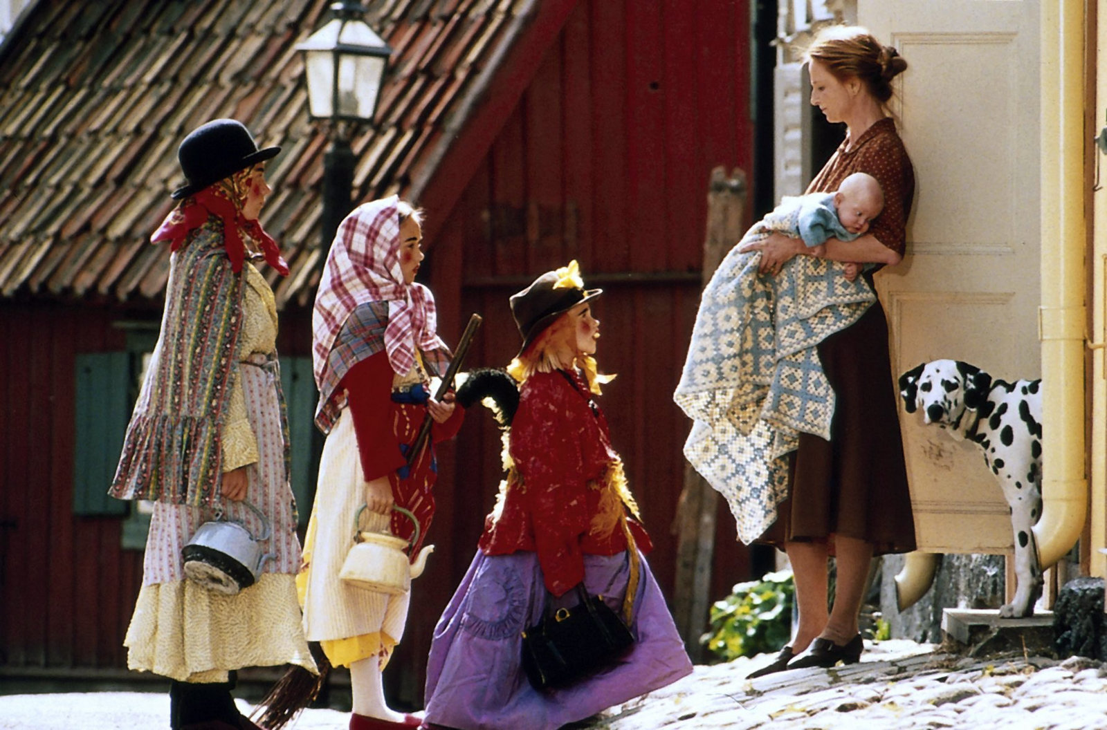 Umzug auf den DachbodenLotta (Grete Havnesköld, 2.v.r.) und ihre Geschwister haben sich als Hexen verkleidet. Sie erbitten Süssigkeiten.Bild: © ZDF/Taurus Film