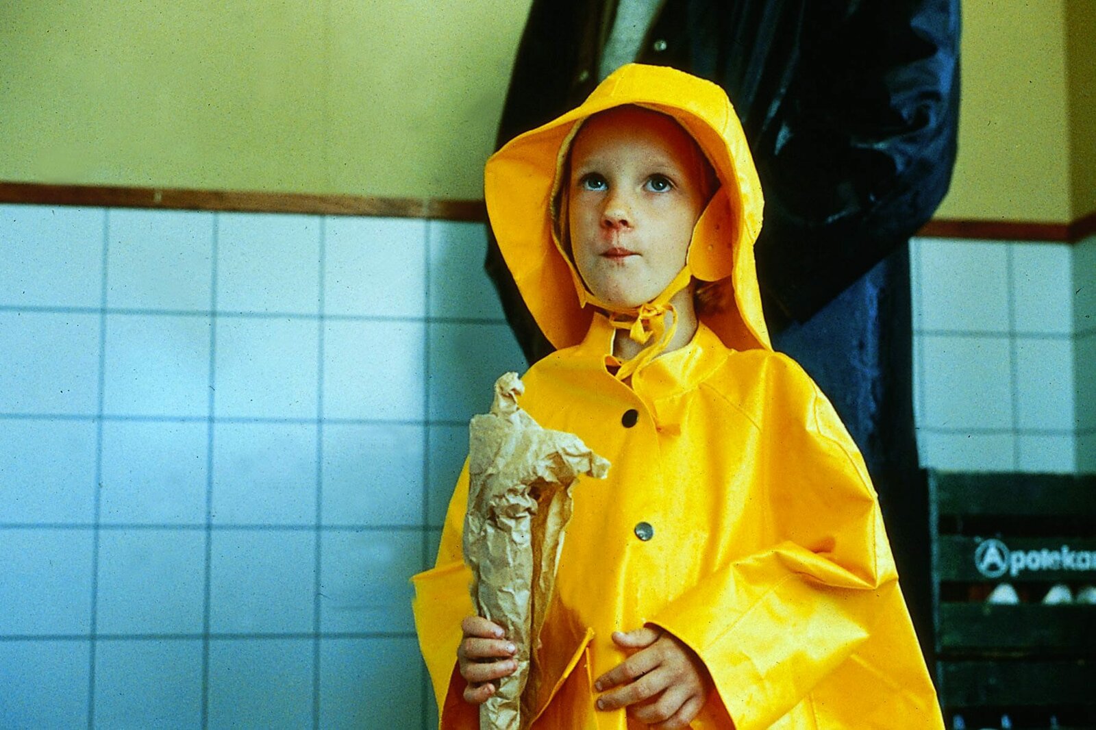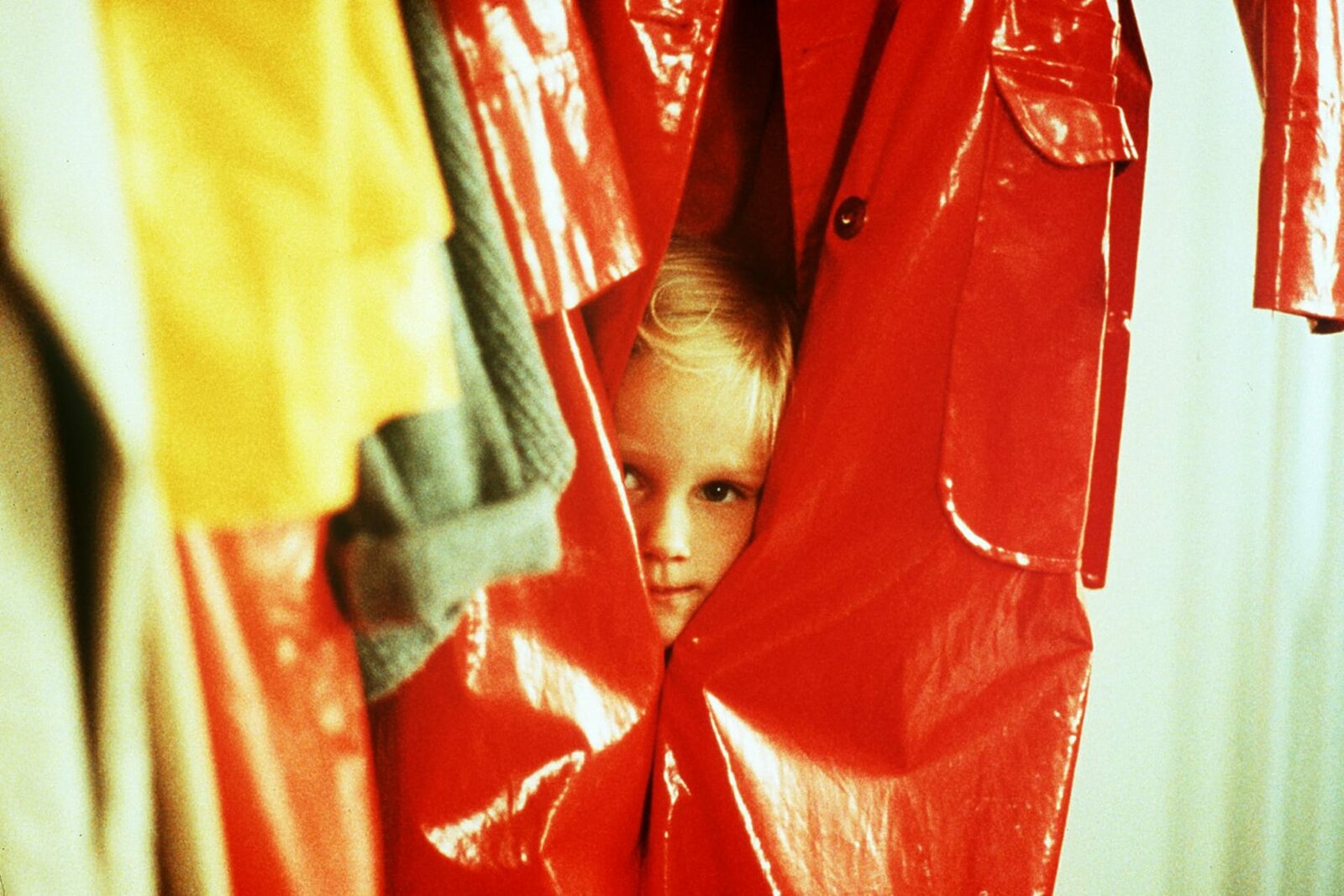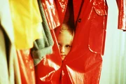 Lotta aus der KrachmacherstraßeLotta (Grete Havnesköld) versteckt sich im Regenmantel, um ihren Vater zu überraschen.Bild: © ZDF/Jan Rydqwist