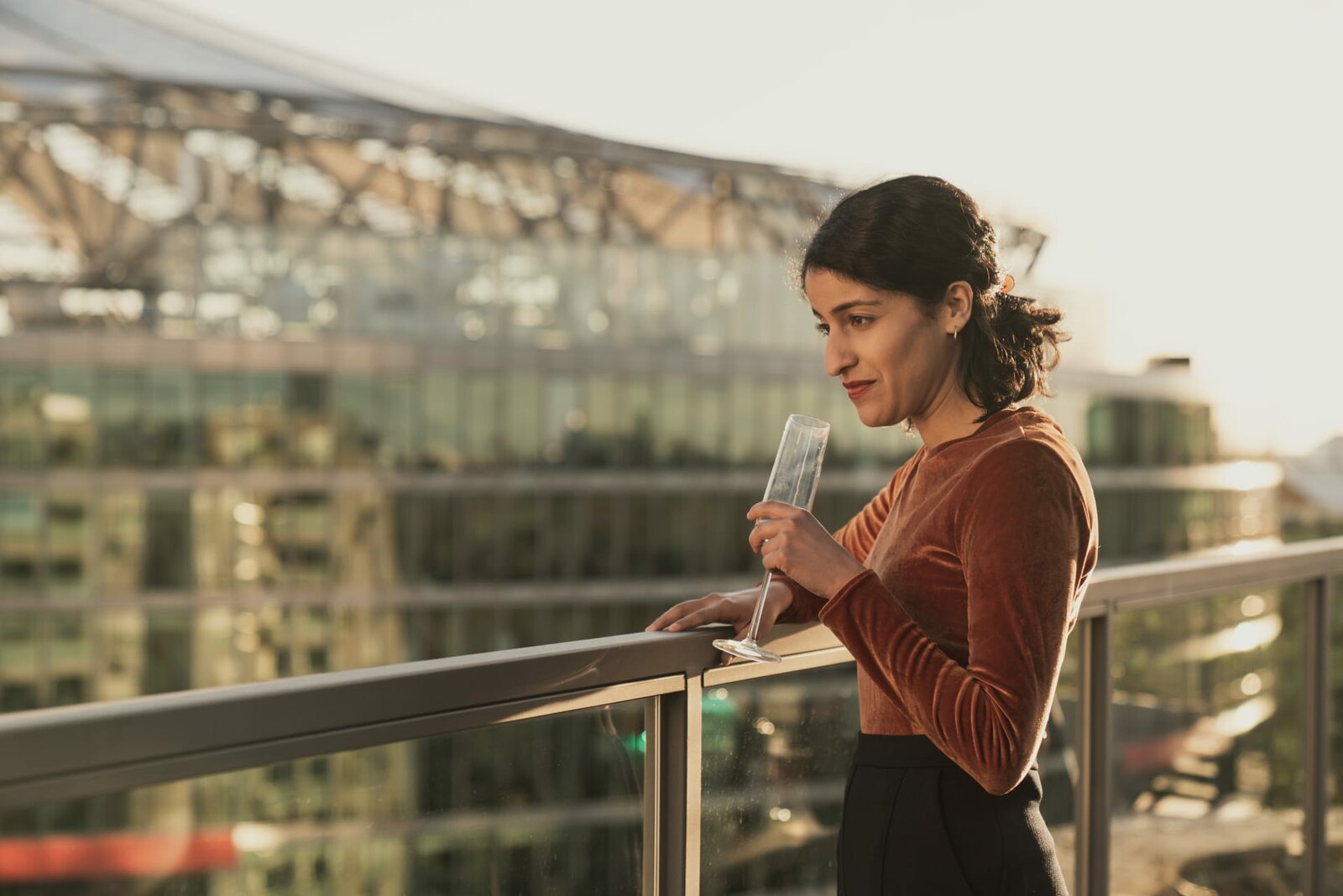 Loving JosephineJosephine Brenner (Karin Hanczewski, r.) veranstaltet eine Firmenfeier auf ihrer Dachterrasse. Hanna (Banafshe Hourmazdi, l.) ist beeindruckt von der Verlagschefin.Bild: © ZDF und Marcus Glahn.