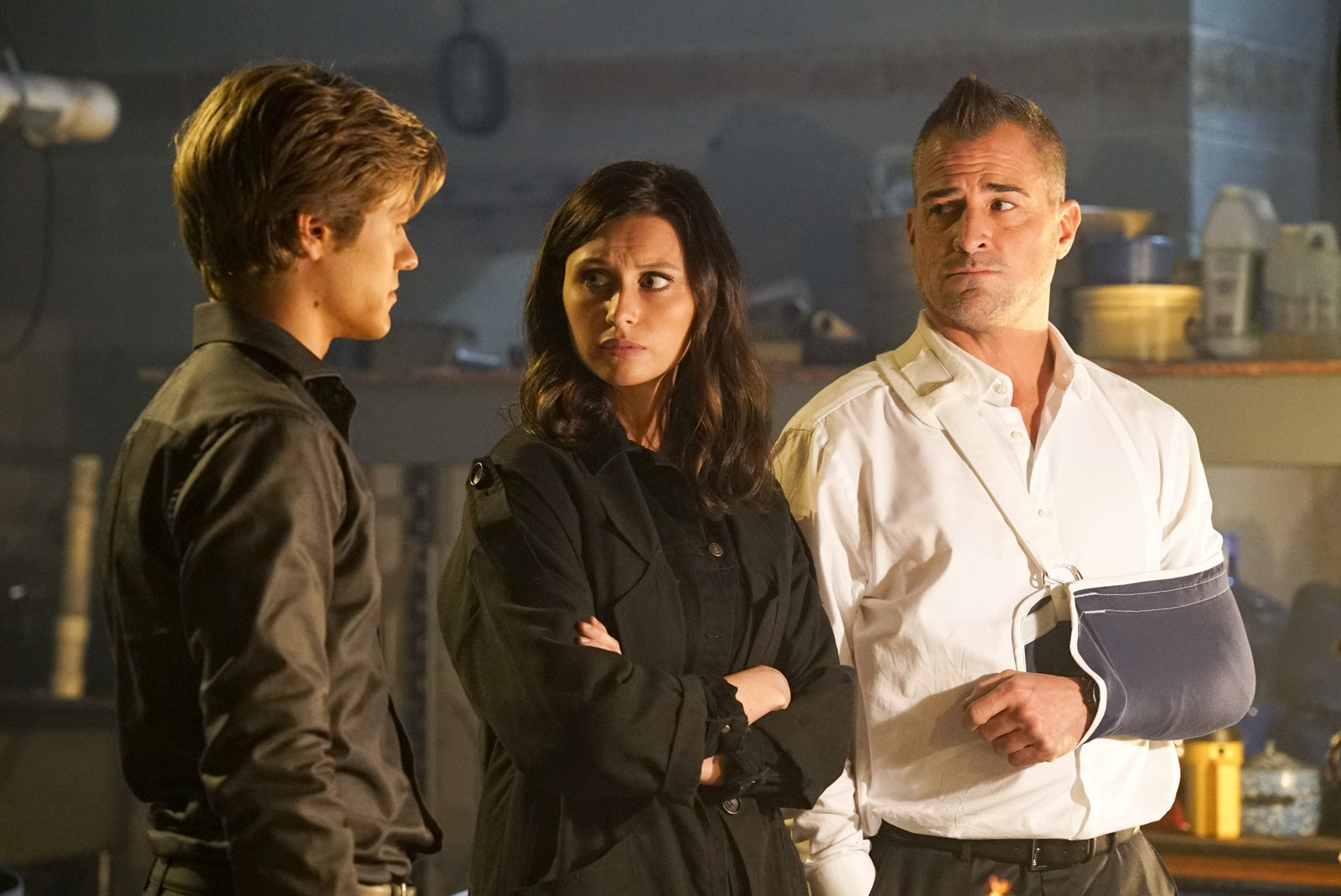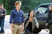 Der TrauerfallWer will ihren Tod? MacGyver (Lucas Till, l.) und Jack (George Eads, r.) helfen Macs enger Freundin Frankie (Aly Michalka, M.), nachdem sie ihren eigenen Tod vorgetäuscht hat, um zu verhindern, dass jemand sie ermordet.Bild: © ORF eins