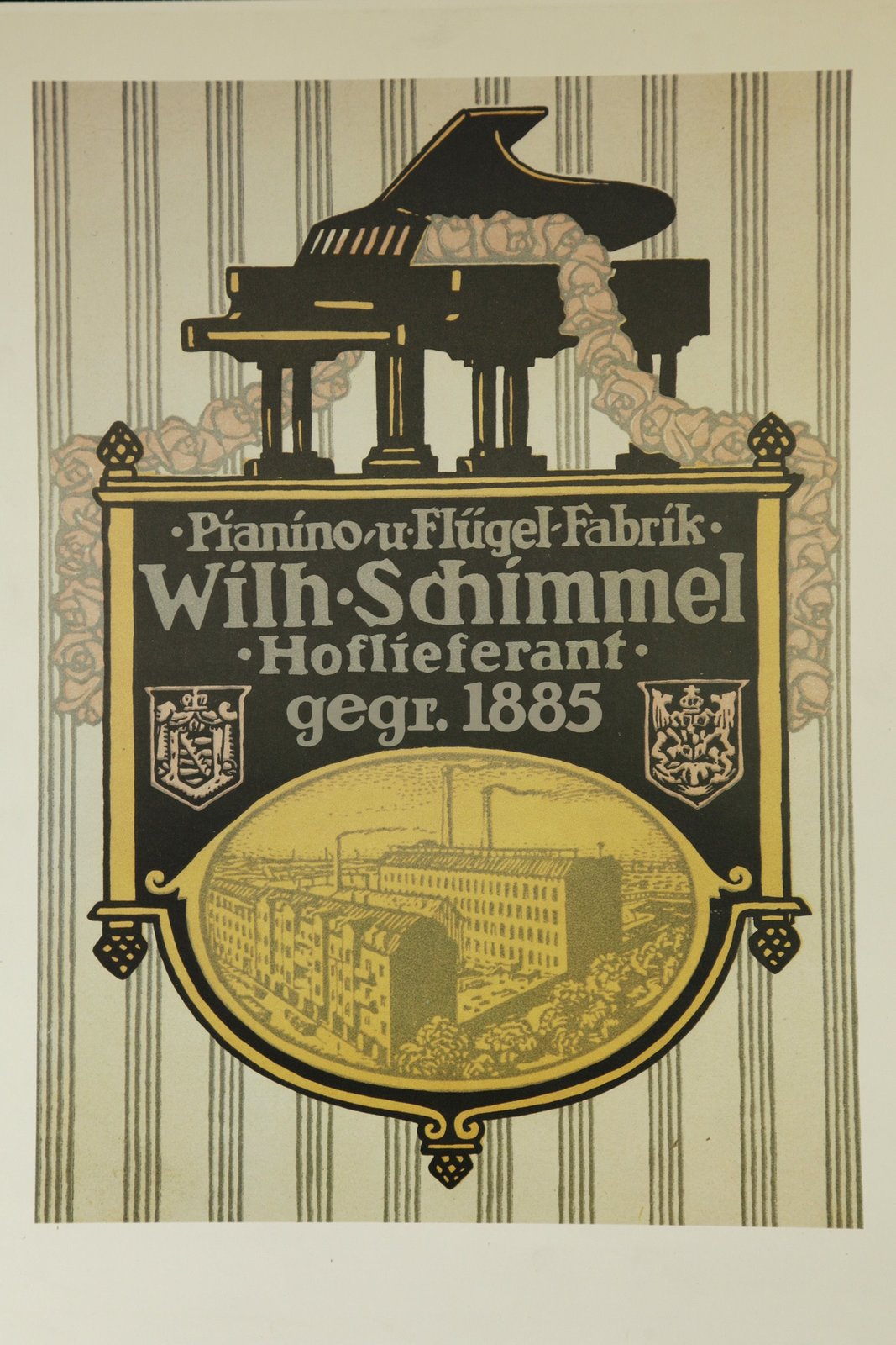 Schimmel-Klaviere: Menschen mit FlügelnNDR Fernsehen MADE IN NORDDEUTSCHLAND, "Schimmel – Klaviere: Menschen mit Flügeln", am Mittwoch (03.12.14) um 21:00 Uhr. Werbeplakat der Klavierfabrik Wilhelm Schimmel um 1900.Bild: © NDR/Nikolaus W. Schimmel