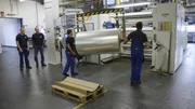 Tesafilm - Von Glibbermännchen und FischaugenIm Tesa-Werk in Offenburg wird der klassische Klebestrefen produziert. Auf solche Folienrollen wird die Klebmasse aufgetragen.Bild: © NDR/Docstation