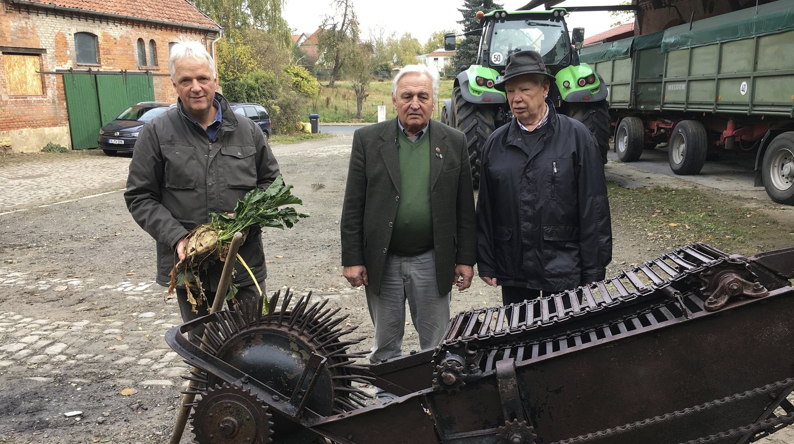 Als der Zucker in den Norden kamCord Büttner (l.) hat den ersten Rübenroder im Schuppen.Bild: © NDR/video.arthouse/Johann Ahrends
