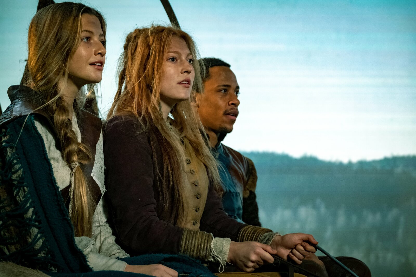 Die HexenprinzessinPrinz Tanka (Jerry Hoffmann, r.) im Kreise der beiden Prinzessinnen aus Eichtal: Amalindis (Zoë Pastelle Holthuizen, l.) und Zottelhaube (Charlotte Krause, M.) .Bild: © ZDF und Conny Klein.