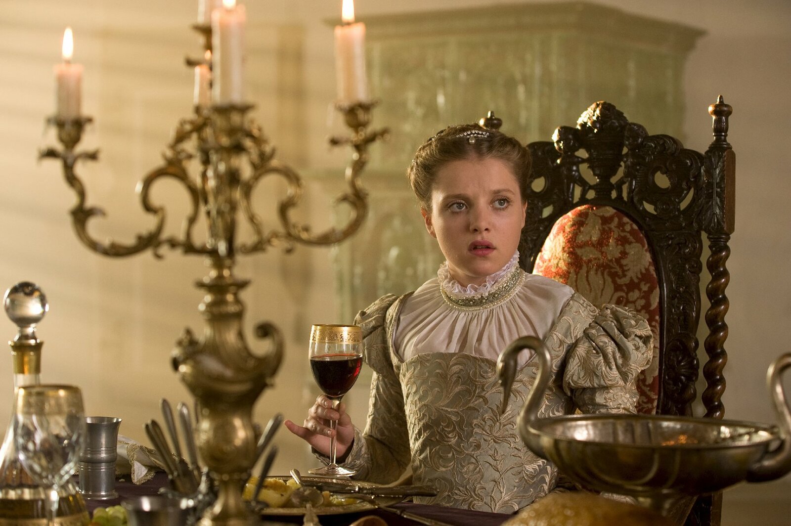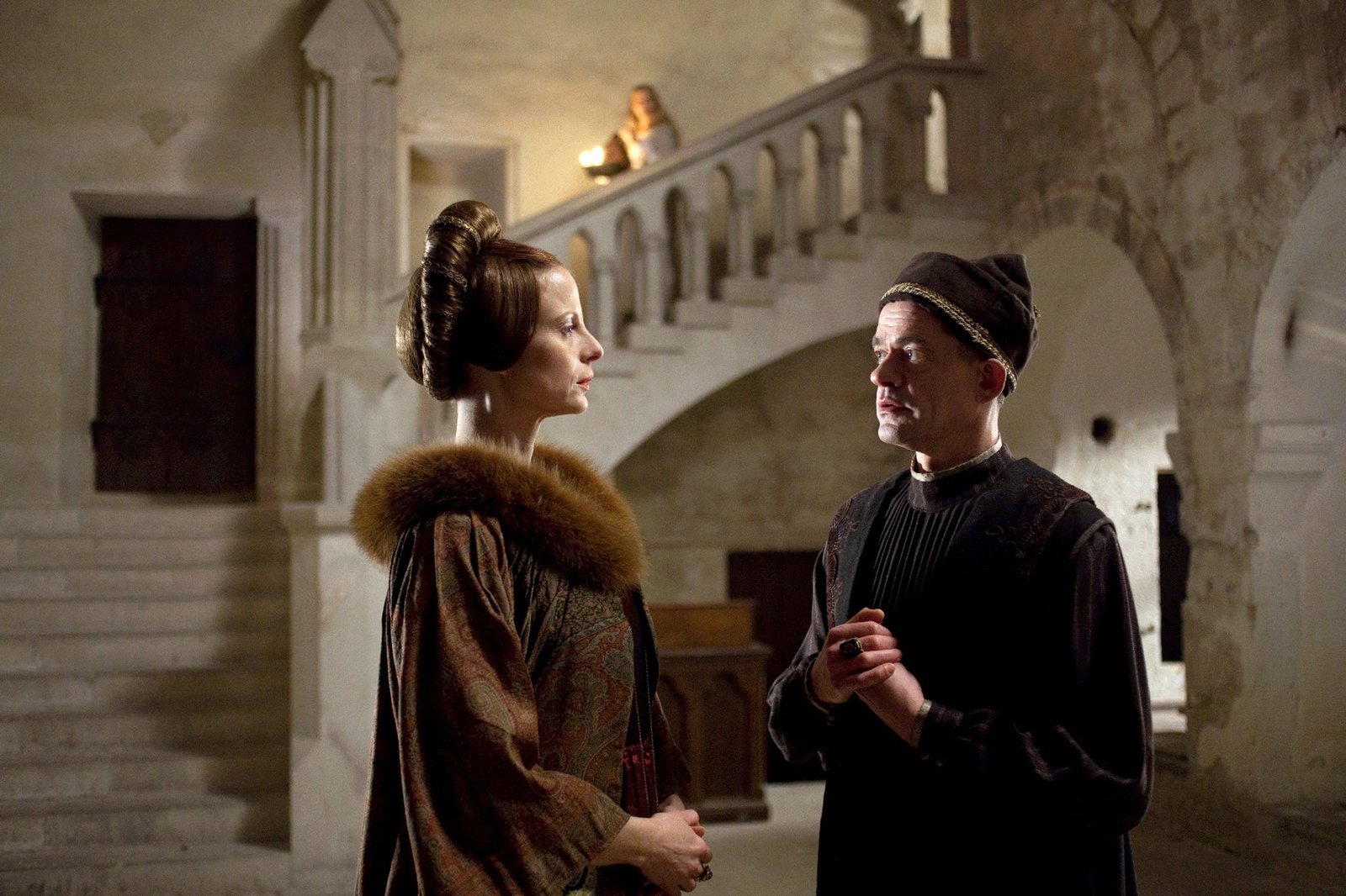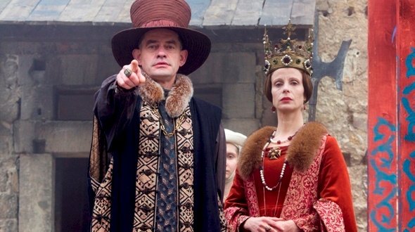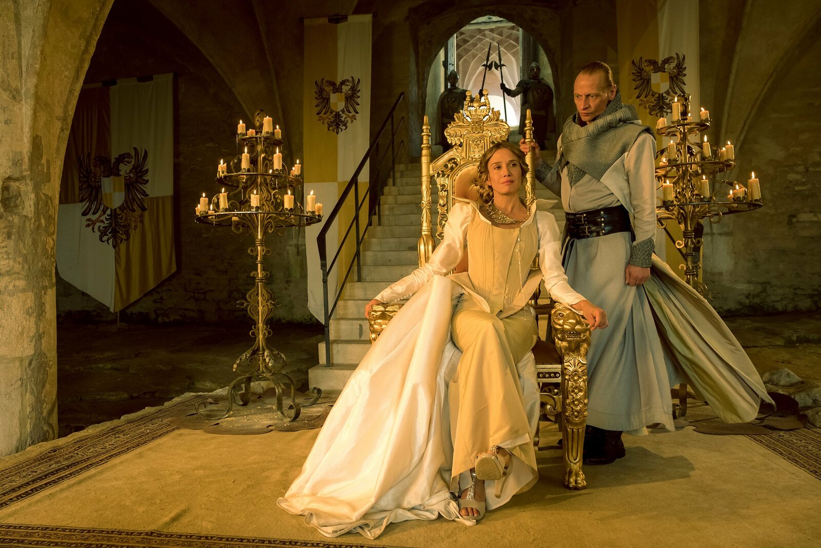 Die sechs SchwäneStill - Die sechs Schwaene Königin Sieglinde (Julia Jäger) und ihr Hofrat Otto (Hennig Peker) spinnen Intrigen. Motiv: Kloster Pforta Produktion Kinderfilm GmbH Regie Karola Hattop Kamera Konstantin KršningBild: © ZDF/Kinderfilm GmbH/Steffen Junghans
