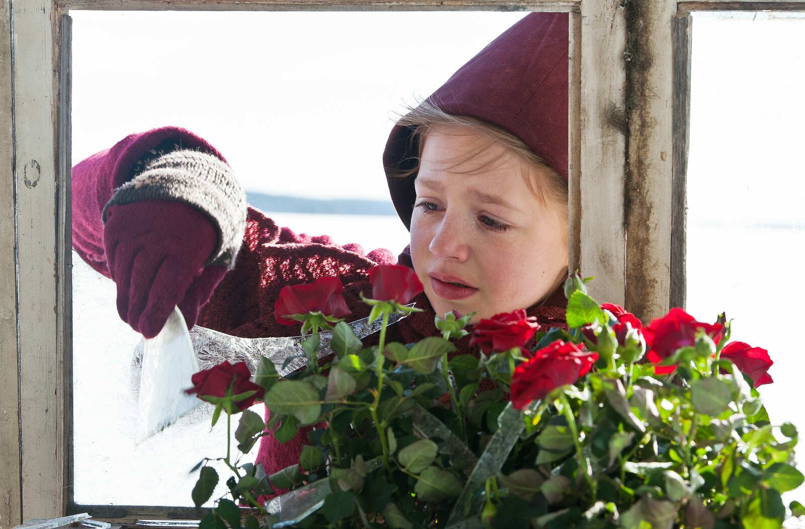 Die SchneeköniginGerda (Flora Li Thiemann) sorgt sich um die Rosen, die in einem Glashaus auch im Winter blühen.Bild: © ZDF und Annika Miettinen./Annika Miettinen