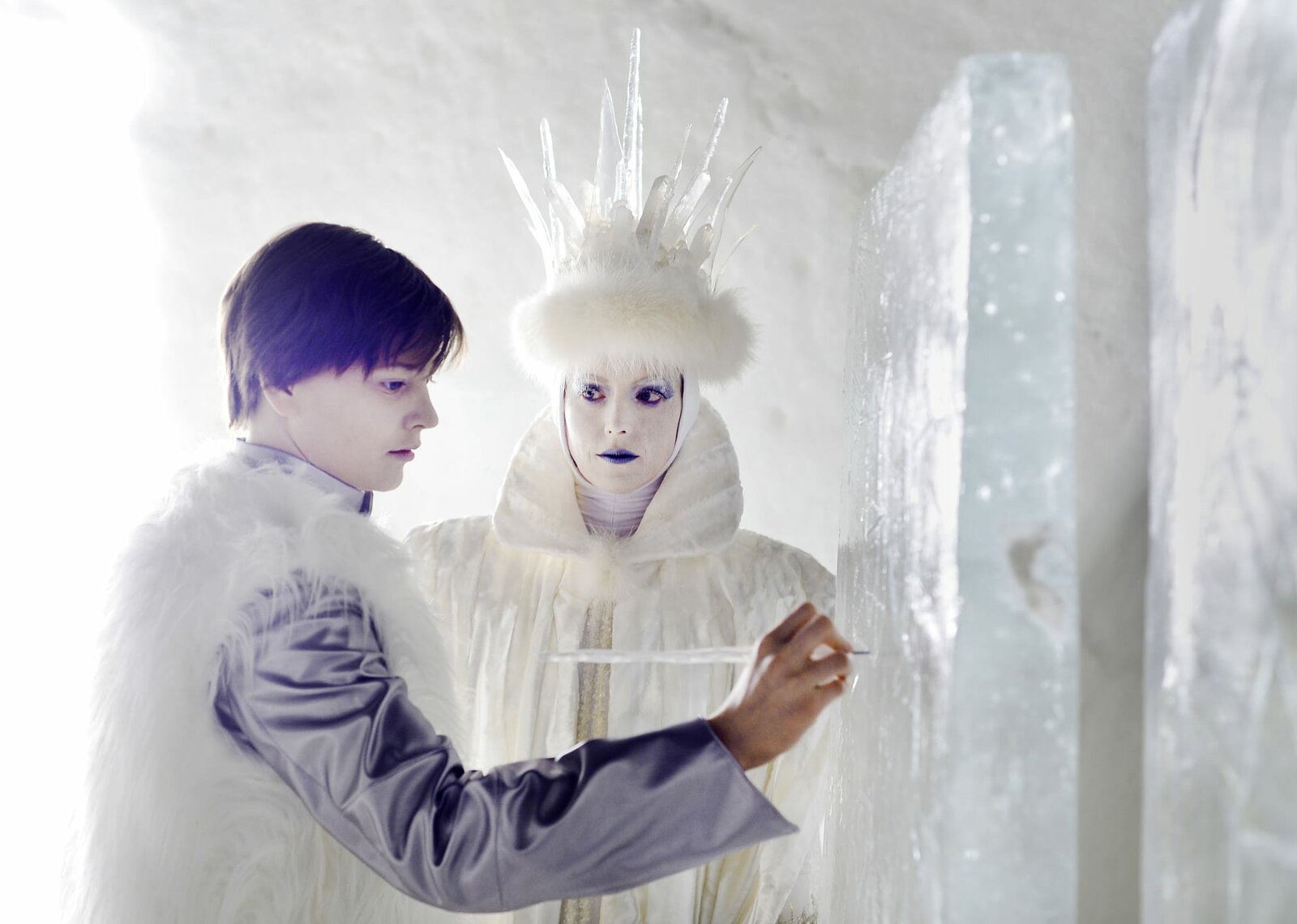 Die SchneeköniginDie Schneekönigin (Linda Zilliacus) will, dass Kay (Kristo Ferkic) ihr ein Rosenhaus baut.Bild: © ZDF und Anniina Nissinen.