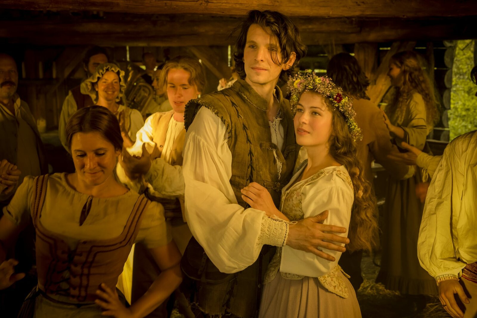 Rübezahls SchatzSchöner könnte das Hochzeitsfest nicht mehr werden für Rosa (Henriette Confurius) und Rübezahl (Sabin Tambrea), hier in der Maske des Jägers Montanus.Bild: © ZDF und Conny Klein