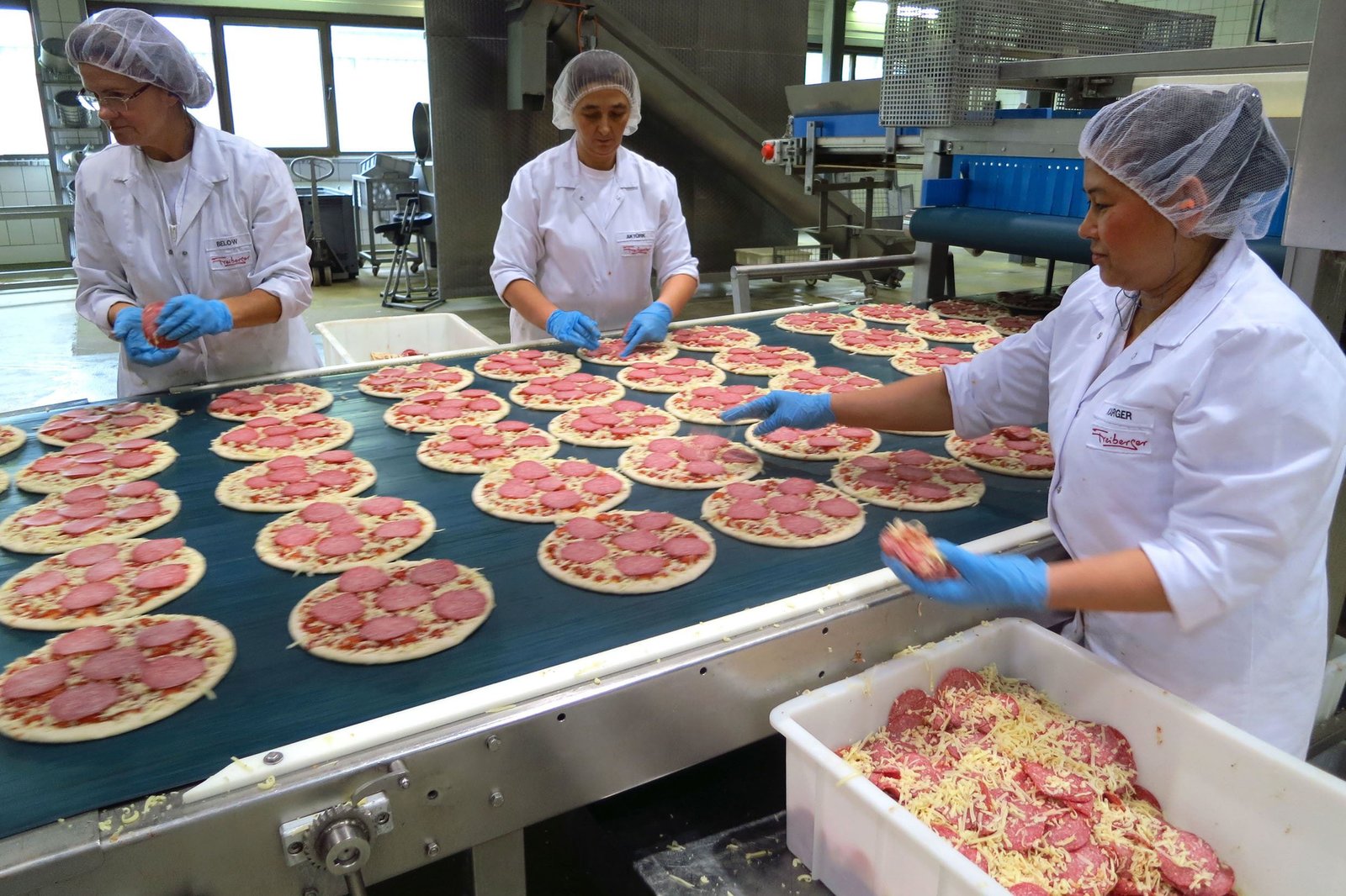 Das Beste (3): Das neue JahrtausendSWR Fernsehen BETRIFFT: DEUTSCHLAND, DEINE PIZZA, am Mittwoch (11.02.15) um 22:00 Uhr. Eine Million Pizzen laufen in dieser Fabrik pro Tag vom Band.Bild: © SWR/NDR/Hauke Wendler