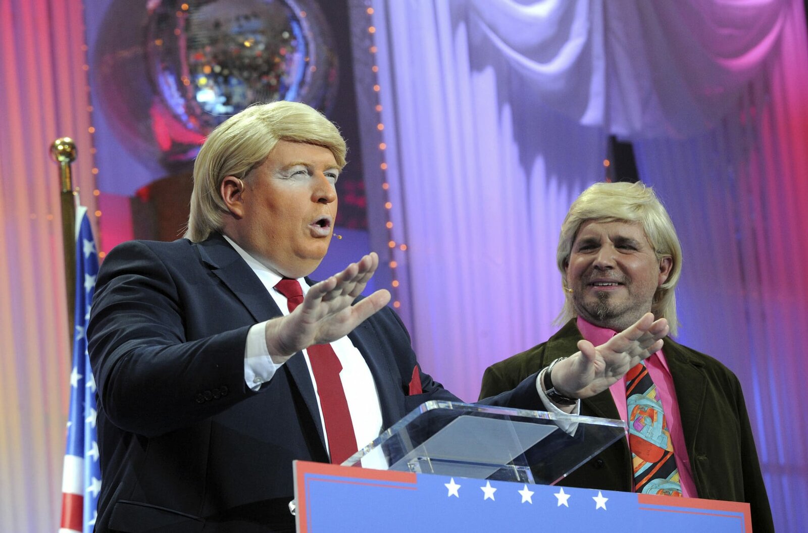 Das Beste aus Mainz bleibt Mainz, wie es singt und lacht 2001 - 2020Die "Gebrüder Trump" in Mainz, Frank Brunswig und Thomas Becker. Sie spielen den US-Präsidenten Donald Trump und dessen pfälzischen Bruder Ludwig. Ihr erklärtes Ziel: "Make Fastnacht great again!" (2017).Bild: © SWR/Volker Oehl