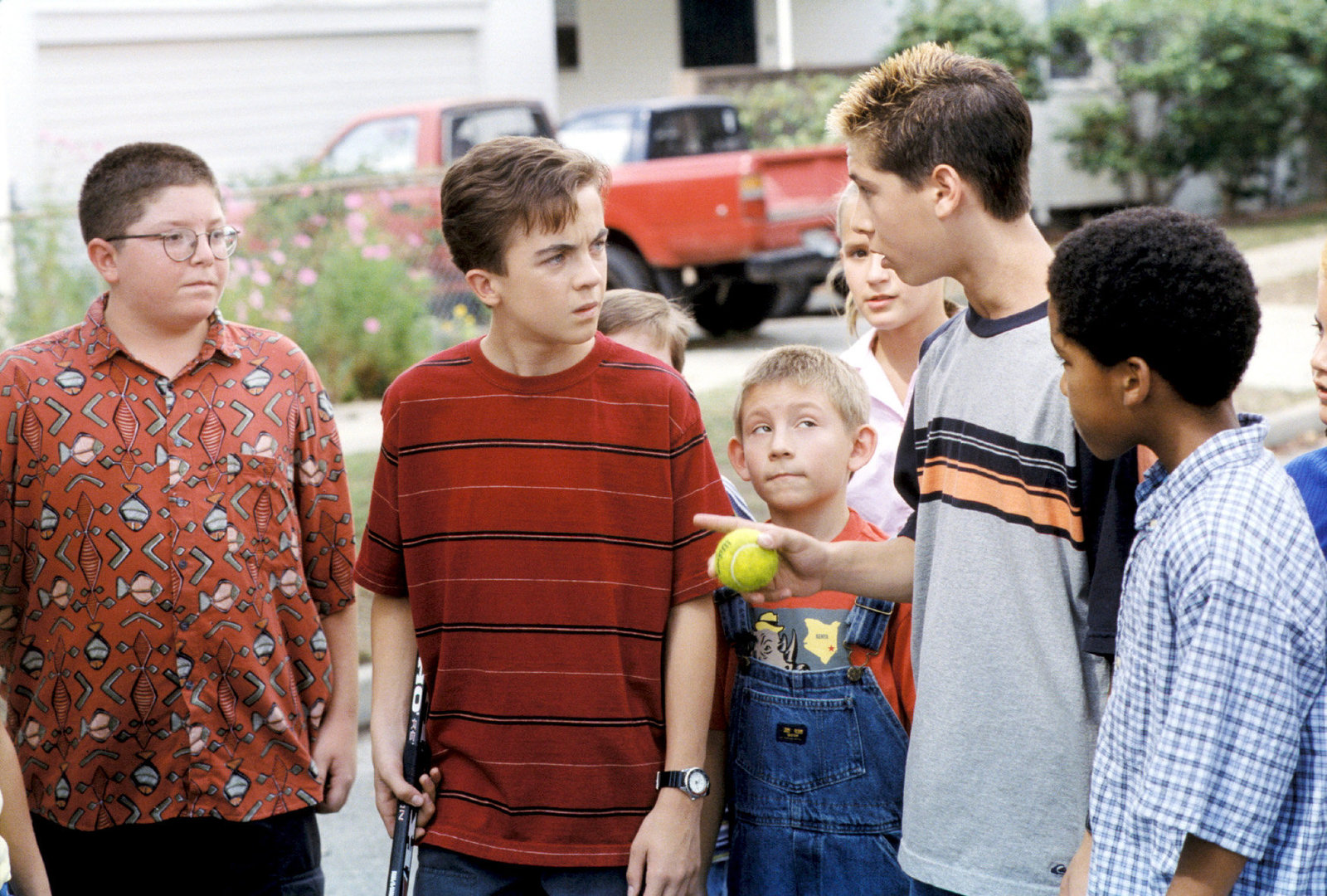 Der Alpha-IdiotReese (Justin Berfield, mi. hinten) naht als Retter in der Not, als ein kleiner Junge von einem älteren Schüler geärgert wird.Bild: © ORF