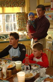 Der perfekte Dad"Malcolm mittendrin", "Der perfekte Dad." Hals Vater ist gestorben. Die beiden hatten wenig Kontakt und Hal ist nicht nach trauern zu Mute. Da er nicht möchte, dass seine Kinder ihm ähnlich gleichgültig gegenüberstehen, versucht Hal, ihnen ein besserer Vater zu sein. Er erlaubt ihnen, die Schule zu schwänzen und will Malcolm sogar ein Auto kaufen. Alleine Abe bemerkt, wie niedergeschlagen Hal ist.Im Bild (v.li.): Bryan Cranston (Hal), Justin Berfield (Reese), Erik Per Sullivan (Dewey).Bild: © ORF