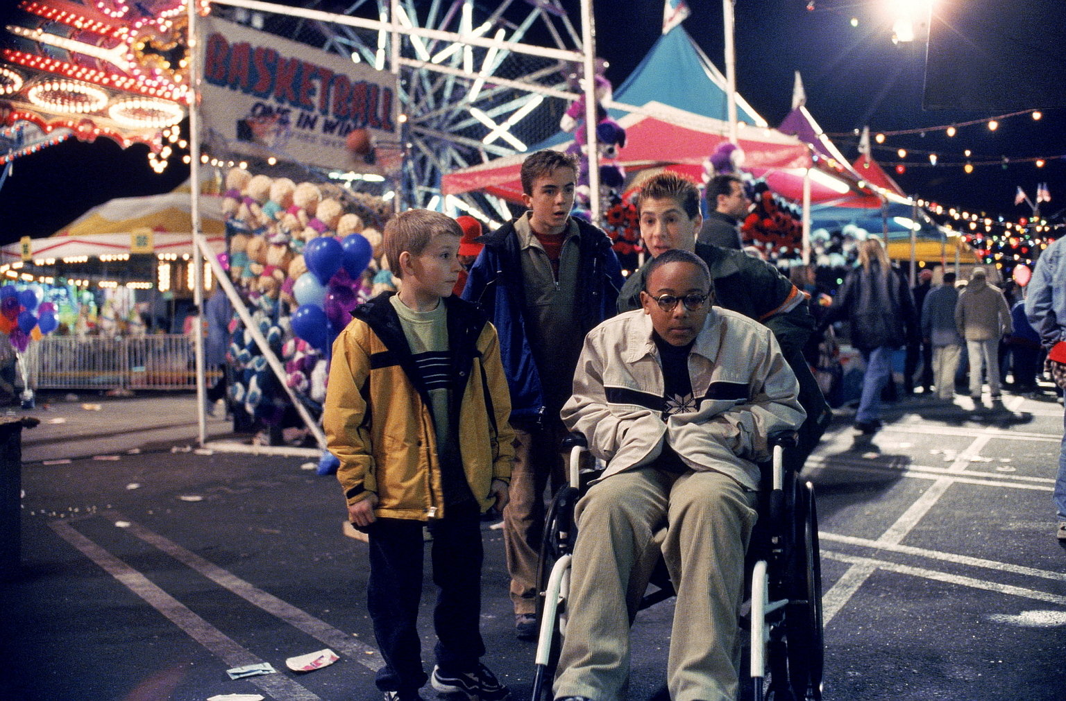 Lügen haben kurze BeineAuf dem Jahrmarkt entdecken Dewey (Erik Per Sullivan, l.), Malcolm (Frankie Muniz, 2.v.l.), Stevie (Craig Lamar Traylor, 2.v.r.) und Reese (Justin Berfield, r.) die Geisterbahn ...Bild: © TM + © 2000 Twentieth Century Fox Film Corporation. All Rights Reserved. Lizenzbild frei