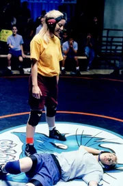 Der SommernachtstraumReese (Justin Berfield, unten) wird beim Catchen von einem Mädchen besiegt.Bild: © ORF