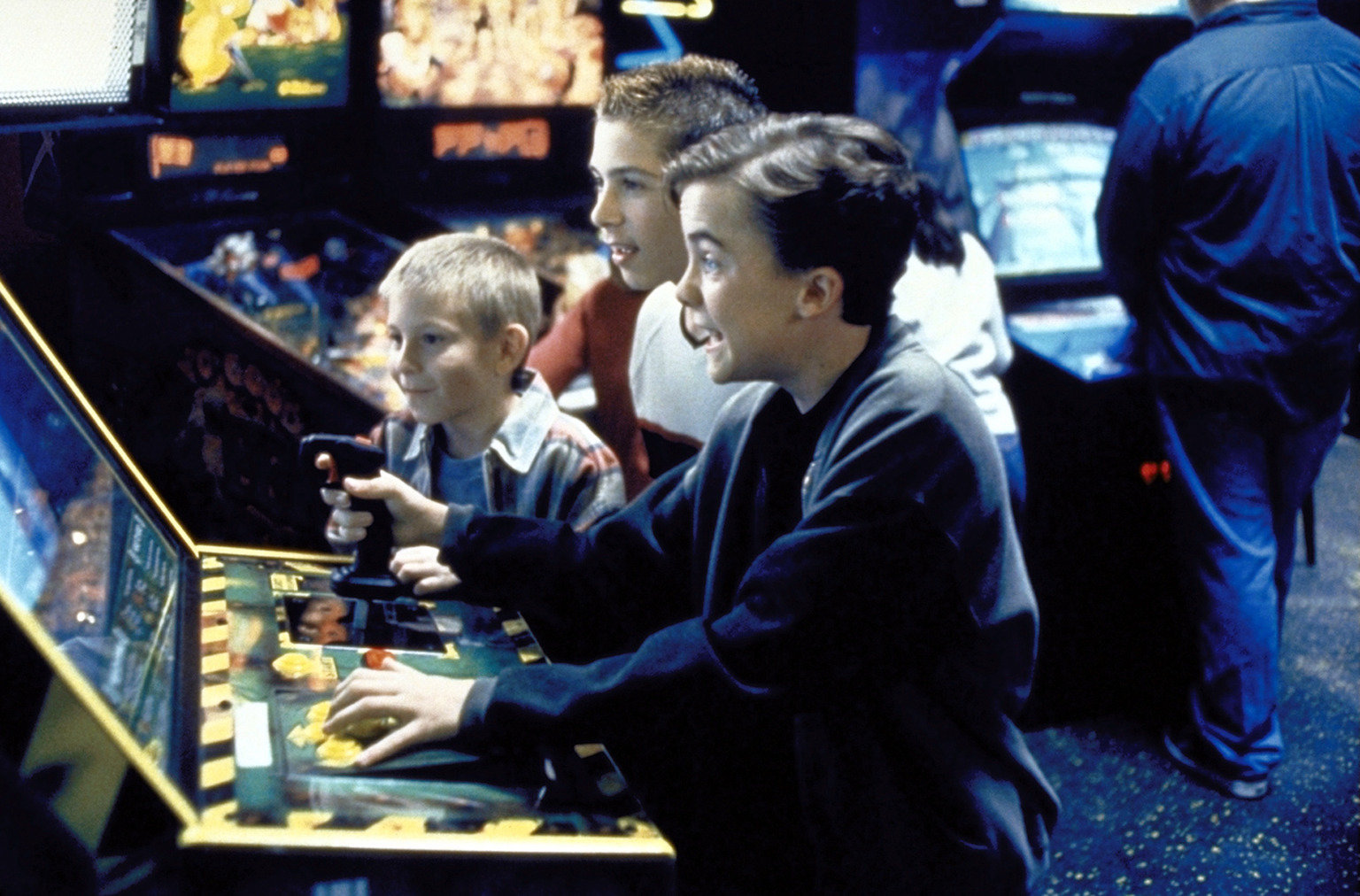 Die AusreißerBei ihrem heimlichen Ausflug in die Stadt vergnügen sich Malcolm (Frankie Muniz, r.), Reese (Justin Berfield, M.) und Dewey (Erik Per Sullivan, l.) in einer Spielhalle ...Bild: © TM + © 2000 Twentieth Century Fox Film Corporation. All Rights Reserved. Lizenzbild frei