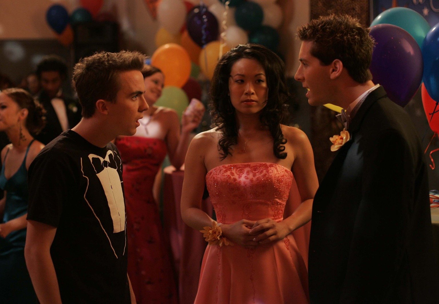 Der Anti-BallUnglücklicherweise muss Janine (Scarlett Lam, M.) mitansehen, wie sich Reese (Justin Berfield, r.) und Malcom (Frankie Muniz, l.) auf dem Abschlussball heftig streiten ...Bild: © TM + © 2000 Twentieth Century Fox Film Corporation. All Rights Reserved. Lizenzbild frei