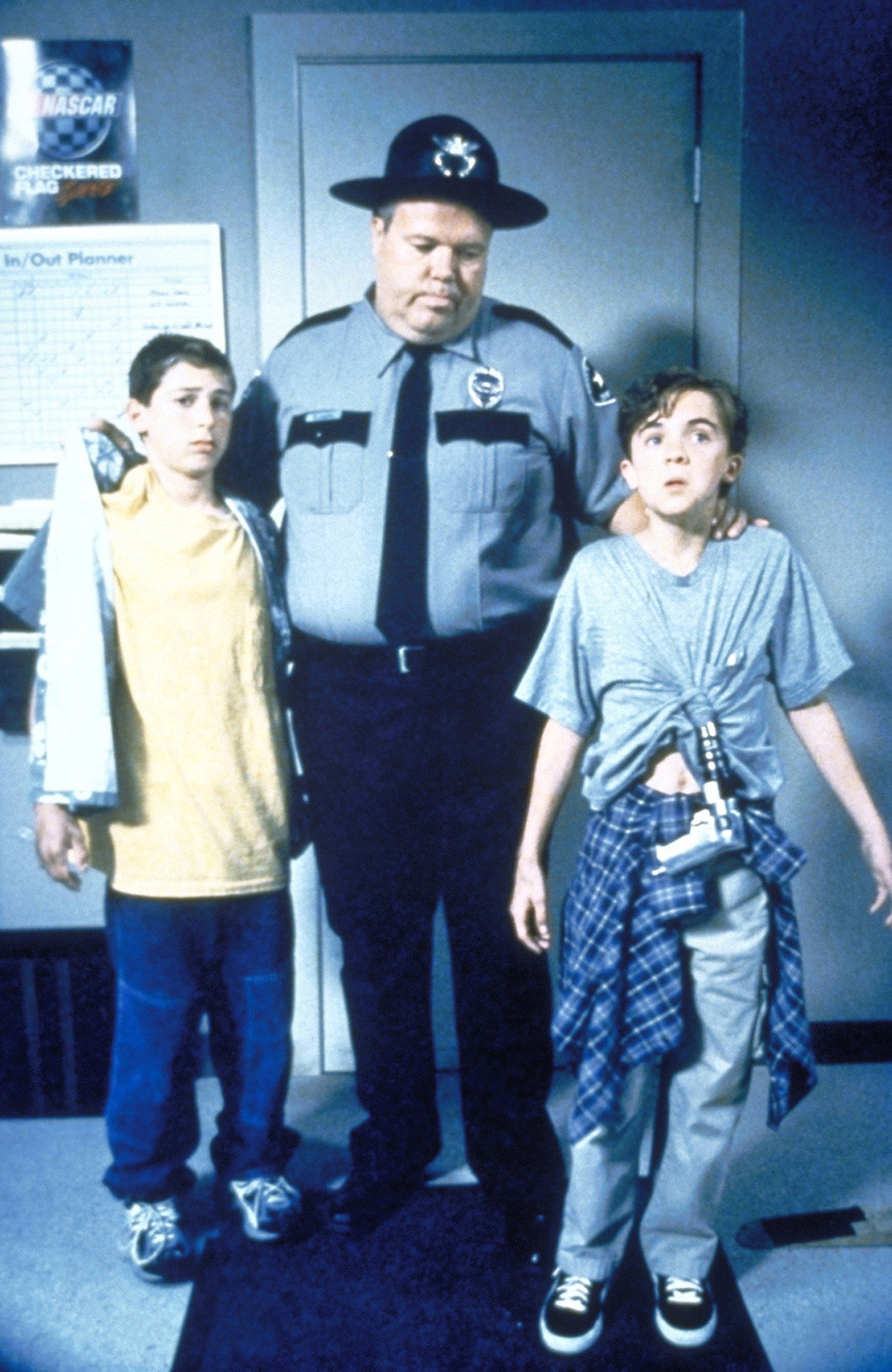 Stock-Car-RennenReese (Justin Berfield, l.) und Malcolm (Frankie Muniz, r.) werden von Officer Karl (Joel Mckinnon Miller, M.) bei einem Streit ertappt.Bild: © 20th Century Fox Lizenzbild frei