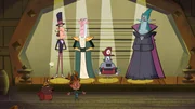 Lumi ist wegMarcus (2.von rechts) hat den König der Mondschlurfer (rechts) befreit, doch der ist darüber gar nicht glücklich, denn er liebt es, die Schokobongos rosa zu lackieren.ÂBild: © ZDF/Mondo TV France