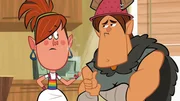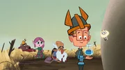 Mega-MarcusMarcus? (Mitte) selbstgebastelter Roboter ist nicht sehr stabil, wie Ephi (links) und Ratrick (rechts) feststellen.Bild: © ZDF/Mondo TV France