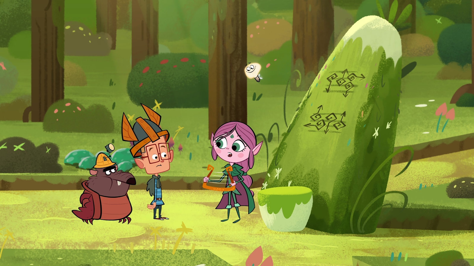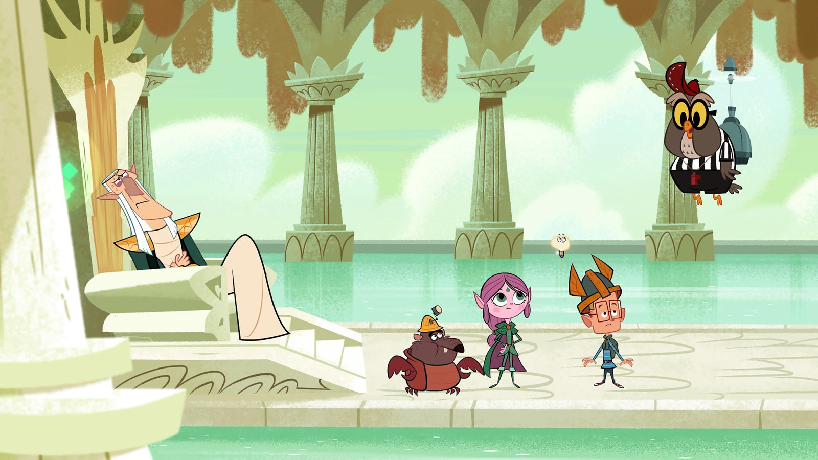 Ich allein!Der König der Elfen (l.) ist krank. Hugo erklärt Marcus, Ephi und Ratrick (von l.), was sie für seinen Heiltrank besorgen sollen.Bild: © ZDF/Mondo TV France
