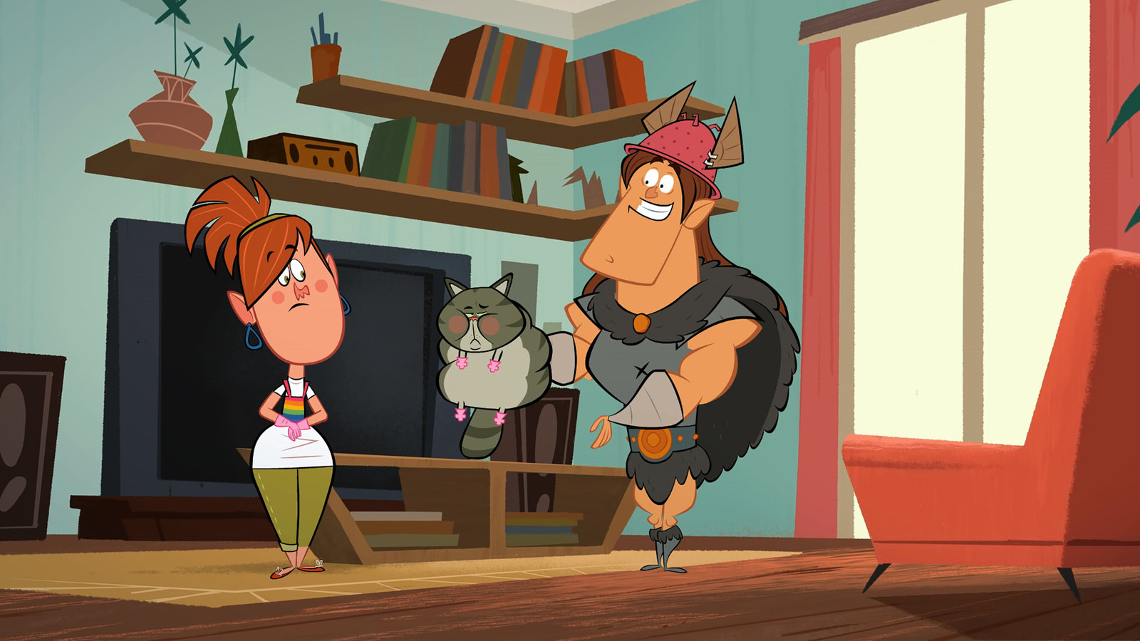 Ratrick, der HeldBei Marcus zuhause muss Computerspielheld Gorbar (r.) mit Babysitterin Seraphine (l.) und Kater Maurice zurechtkommen.© ZDF/Mondo TV France – Honorarfreie Verwendung gemäß AGB im redaktionellen Zusammenhang mit genannter Sendung bei Nennung "Bild: ZDF/Mondo TV France". Andere Verwendung nur nach Absprache. KiKA Marketing & Kommunikation Tel.: 0361/218-1826 Mail: bildredaktion@kika.deBild: © "...
